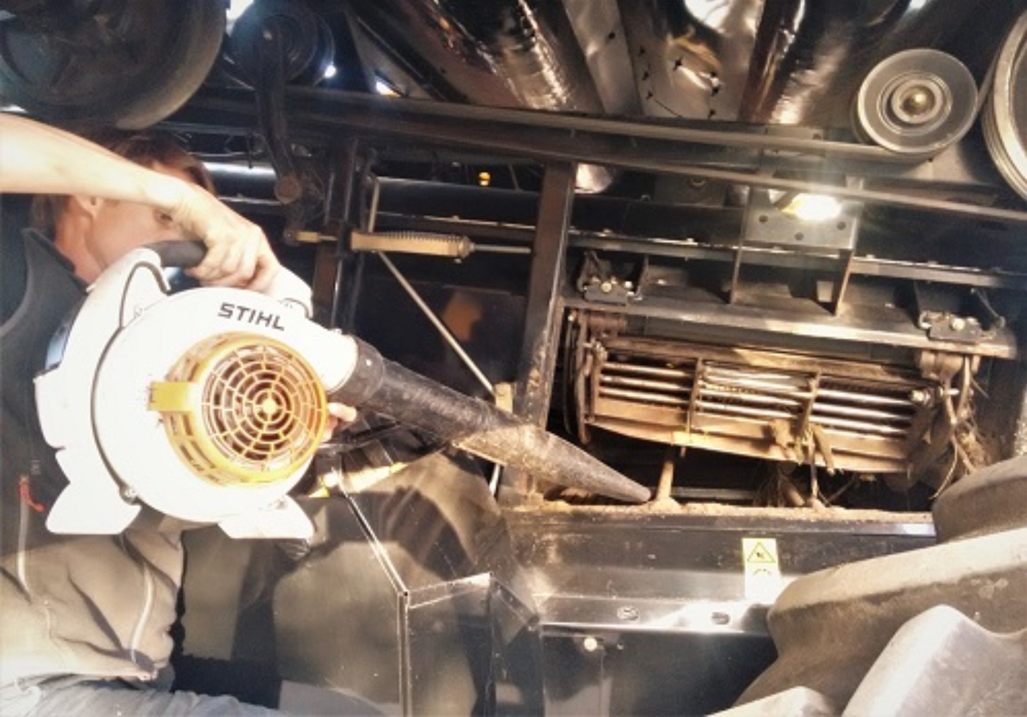Es importante realizar una correcta y eficiente limpieza con la sopladora, al menos tres veces al día en todos aquellos sitios de acumulación de granza.