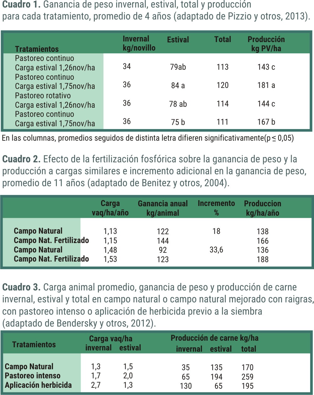 cortos. La utilización de estos pastizales está en su límite máximo y se necesita mejorar la oferta de forraje y distribución a través del año. Es abundante la información sobre la respuesta de campos naturales a la fertilización fosfórica.
