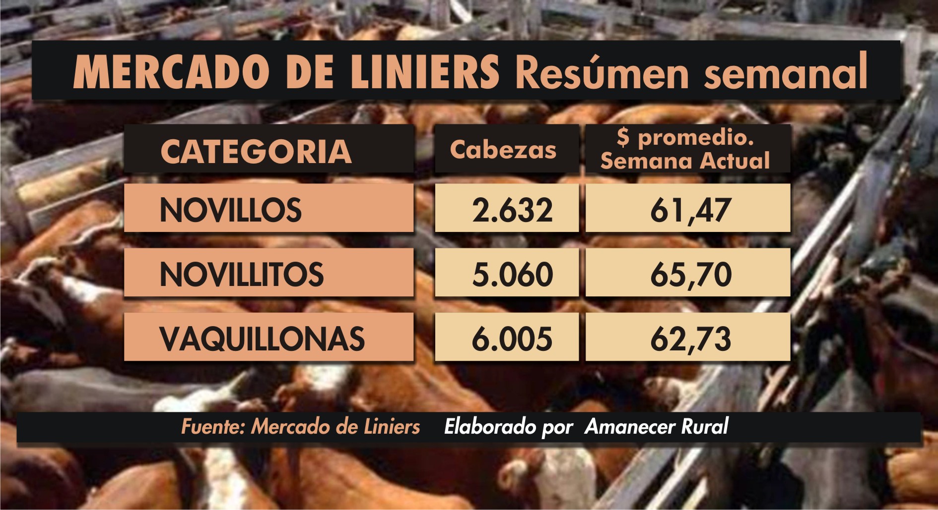 El cierre también ofreció una entrada limitada en volumen pero no así en calidad. Los conjuntos livianos de novillitos se comercializaron con rapidez y precios superiores a los del pasado miércoles, como consecuencia de la clase que reunían, mientras que las vacas apenas empataron los precios de esa ronda.