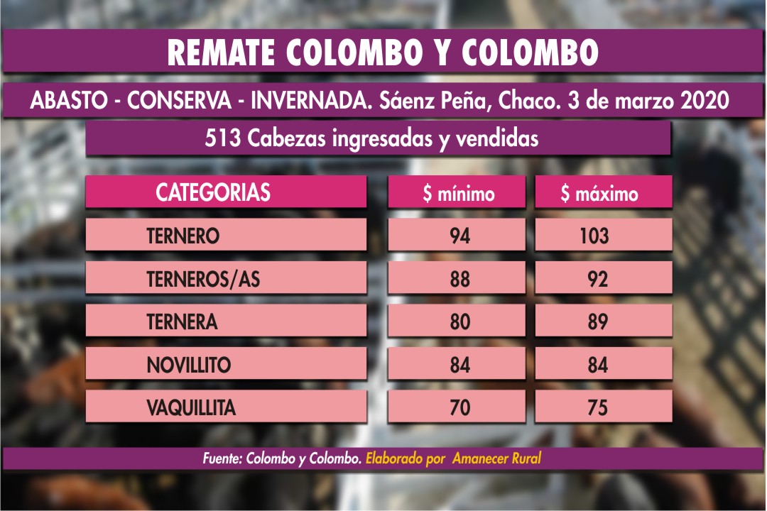 REMATES DE ABASTO CONSERVA E INVERNADA DE COLOMBO Y COLOMBO