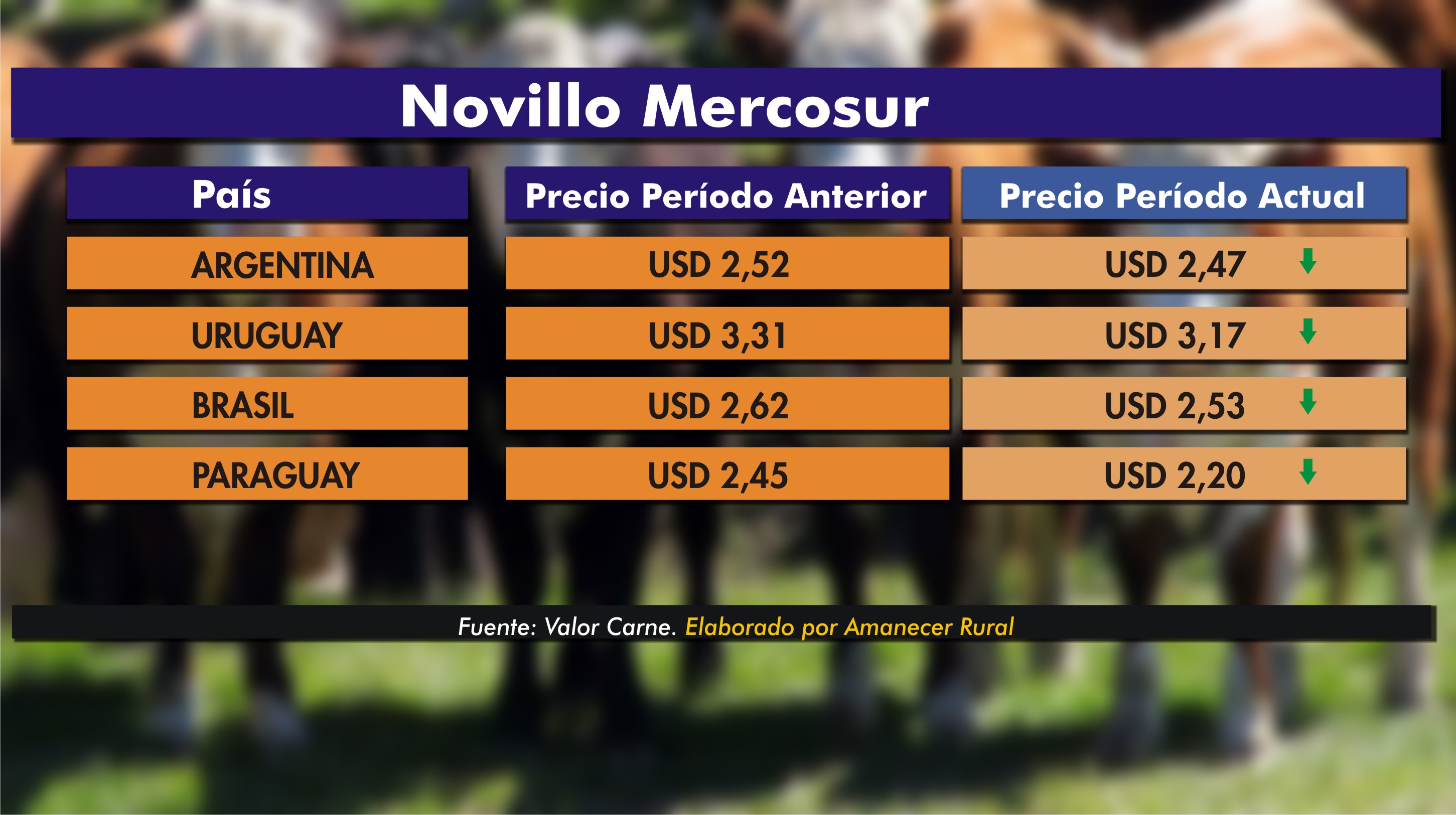 NOVILLO MERCOSUR: CAEN LOS PRECIOS POR LA INFLUENCIA DE LOS MERCADOS EXTERNOS